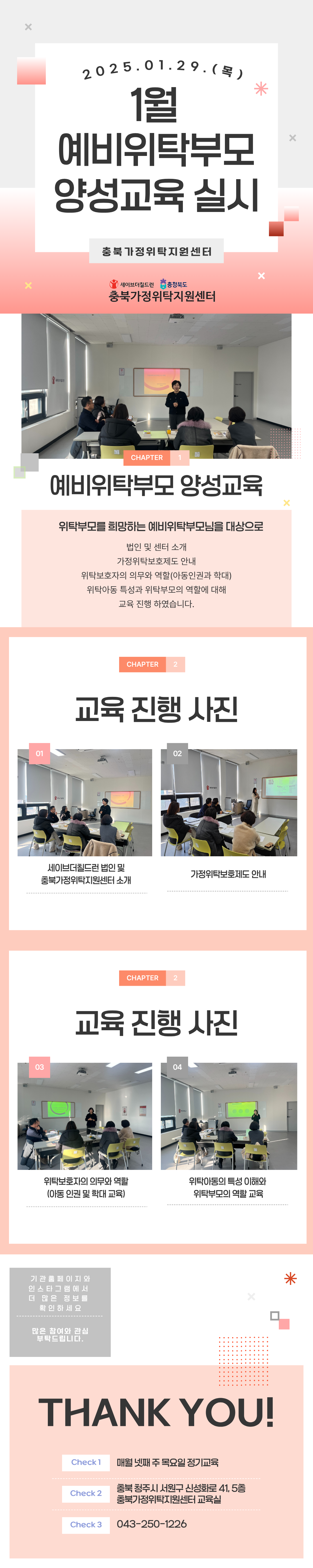 ÃæºÏ°¡Á¤À§Å¹Áö¿ø¼¾ÅÍ´Â 2026³â 1¿ù 29ÀÏ(¸ñ) ¿ÀÈÄ 1½Ã, ¿¹ºñÀ§Å¹ºÎ¸ð¸¦ ´ë»óÀ¸·Î ÇÑ Á¤±â ±³À°À» ½Ç½ÃÇÏ¿´½À´Ï´Ù. À̹ø ±³À°¿¡´Â ÃÑ 5¸íÀÌ Âü¼®ÇÏ¿´À¸¸ç, °¡Á¤À§Å¹Á¦µµÀÇ ÀÌÇØ¸¦ ºñ·ÔÇÏ¿© À§Å¹¾Æµ¿ÀÇ ½É¸®Àû Ư¼º°ú ¾çÀ° ½Ã À¯ÀÇ»çÇ×, À§Å¹ºÎ¸ðÀÇ ¿ªÇÒ°ú Ã¥ÀÓ µî¿¡ ´ëÇØ ¾È³»ÇÏ¿´½À´Ï´Ù. Âü¿©ÀÚÀÇ ÀÌÇØ ¼öÁذú °ü½É»ç¸¦ ¹Ý¿µÇÏ¿© ±¸¼ºµÇ¾ú°í, ½ÇÁ¦ »ç·Ê Áß½ÉÀÇ ¼³¸í°ú ÀÚÀ¯·Î¿î ÁúÀÇÀÀ´äÀÌ È°¹ßÈ÷ ÀÌ·ç¾îÁ³½À´Ï´Ù. Âü¿©ÀÚµéÀº À§Å¹Á¦µµ Àü¹Ý¿¡ ´ëÇÑ ±¸Ã¼ÀûÀÎ Á¤º¸¸¦ ¾ò°í, À§Å¹ºÎ¸ð·Î¼ÀÇ Áغñ °úÁ¤¿¡ ´ëÇØ ½ÇÁúÀûÀÎ µµ¿òÀ» ¹Þ¾Ò´Ù´Â ±àÁ¤ÀûÀÎ ¹ÝÀÀÀ» º¸¿´½À´Ï´Ù. ÃæºÏ°¡Á¤À§Å¹Áö¿ø¼¾ÅÍ´Â ¾ÕÀ¸·Îµµ ¿¹ºñÀ§Å¹ºÎ¸ð¸¦ À§ÇÑ Á¤±â ±³À°À» Áö¼ÓÀûÀ¸·Î ¿î¿µÇÒ ¿¹Á¤ÀÔ´Ï´Ù. À§Å¹Á¦µµ¿¡ °ü½ÉÀÌ Àְųª Âü¿©¸¦ Èñ¸ÁÇϽô ºÐÀº ¾ðÁ¦µçÁö ¼¾ÅÍ·Î ¹®ÀÇÇØ Áֽñ⠹ٶø´Ï´Ù. 📞 ¹®ÀÇ: 043-250-1226