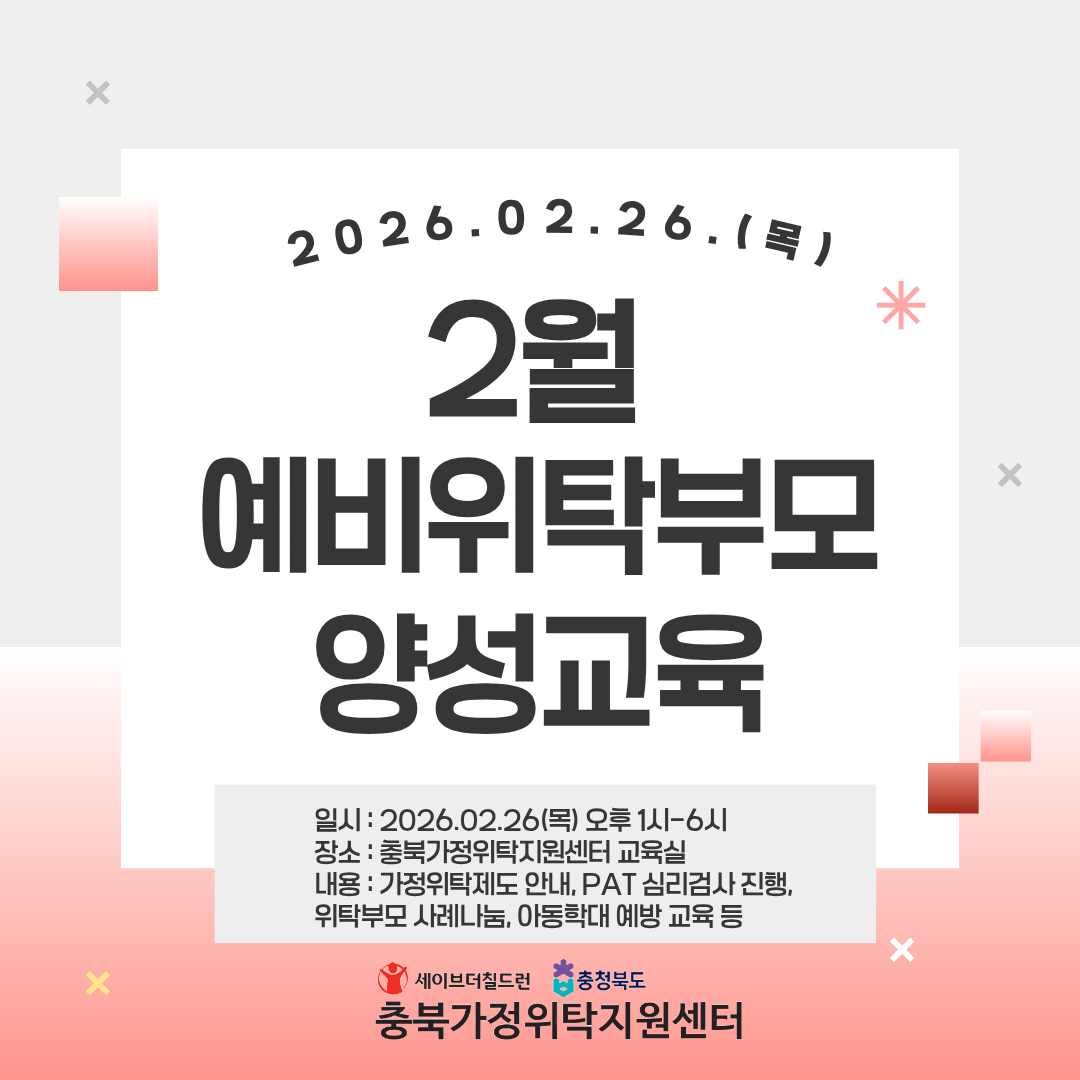2¿ù 26ÀÏ ¸ñ¿äÀÏ ¿ÀÈÄ 1½ÃºÎÅÍ 6½Ã±îÁö ¼¾ÅÍ ±³À°½Ç¿¡¼ ÁøÇàµÉ ¿¹Á¤ÀÔ´Ï´Ù.±³À° ½Åû ¹× ±âŸ ¹®ÀÇ´Â 043-250-1226 ¼¾ÅÍ·Î ÀüÈÁÖ¼¼¿ä:)¸¹Àº °ü½É°ú Âü¿© ºÎʵ右´Ï´Ù!